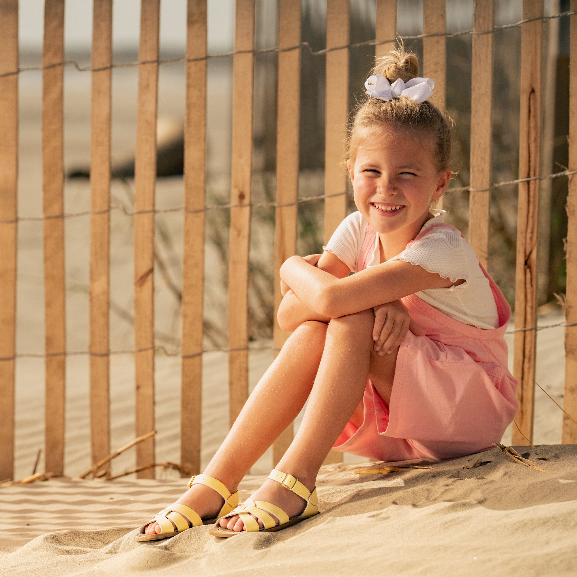 The Salt Water Original sandal, the first to debut from Walter Hoy’s workshop in 1944, is defined by its hand-stitched, non-slip, molded rubber sole and scuff-resistant, water-friendly genuine leather upper. They clean up easily, come with rust-proof brass buckles and are made for in-and-out-of-water wear. Available in adult and children’s sizes, this timeless style is popular among celebrities and fashionistas.
