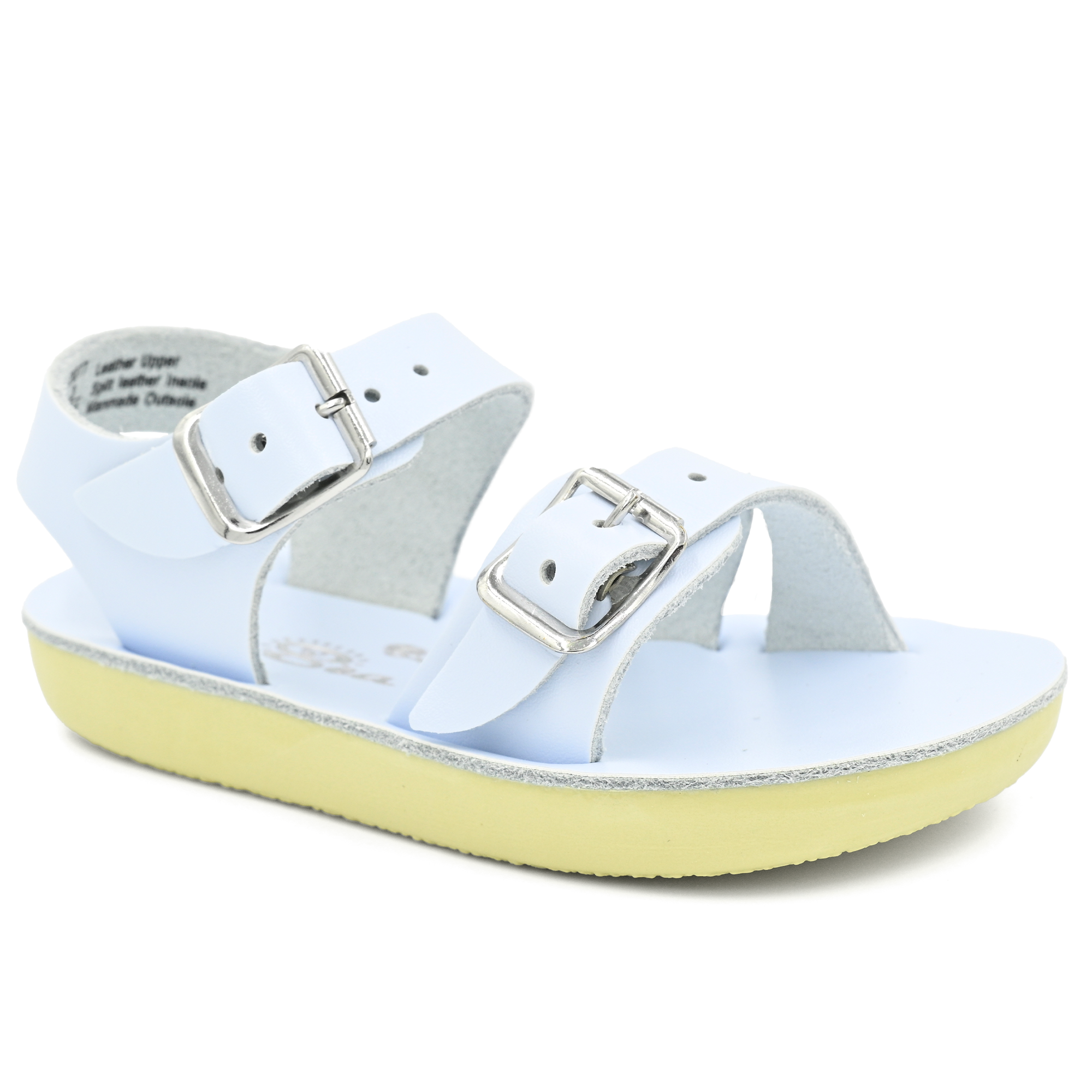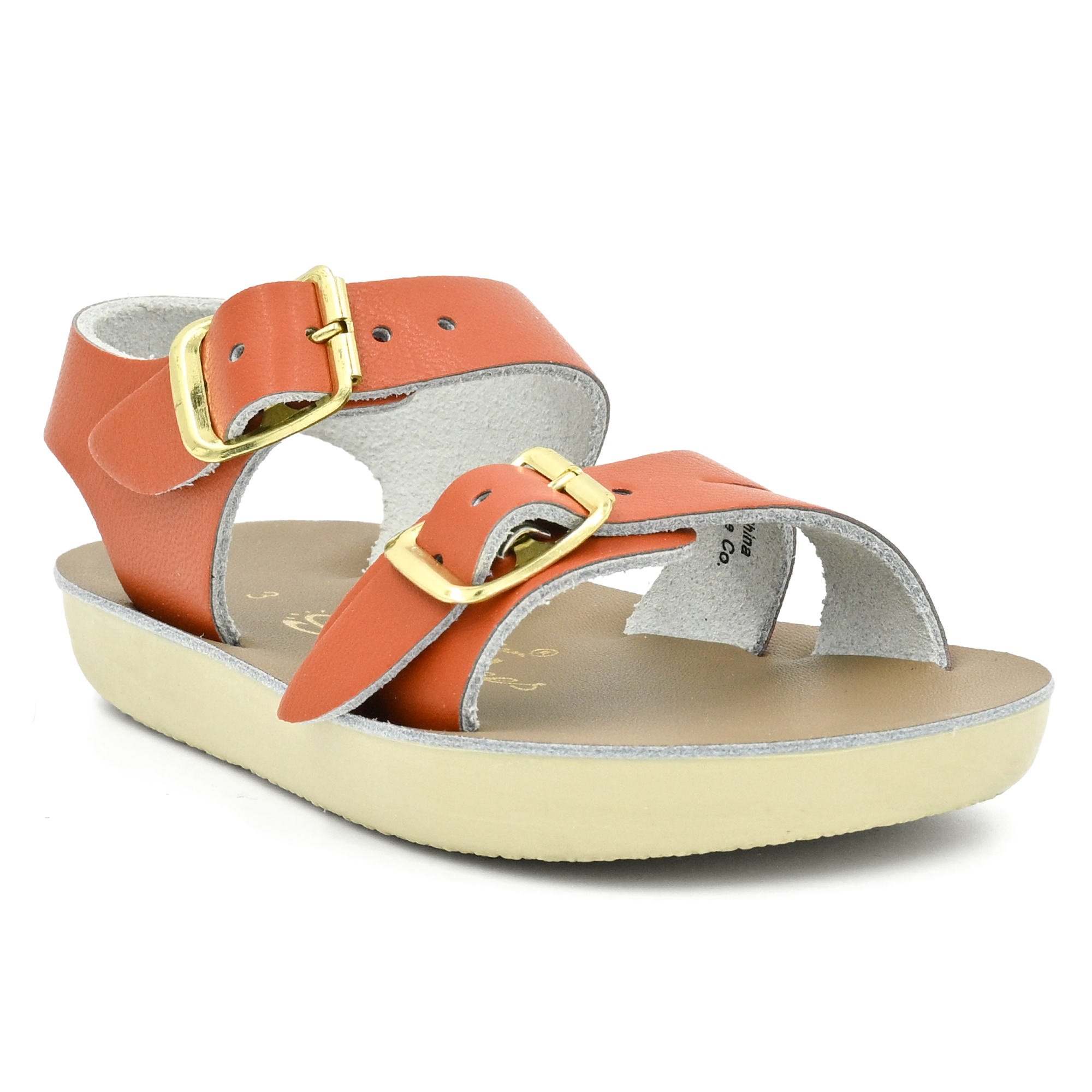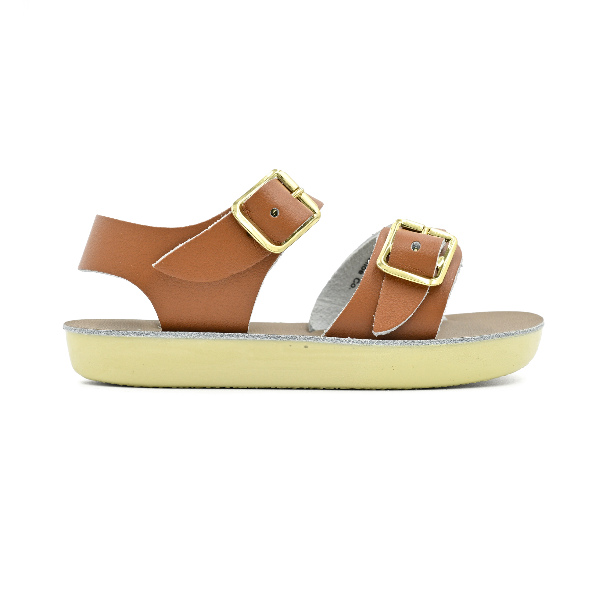 The Sun-San Sea Wee is made in the smallest baby sizes. We’ve added flex over the toe, making this little sandal a perfect starter pair for your tiny adventurer. A lightweight, cushioned urethane sole, rust-proof brass buckles and scuff-resistant, water-friendly genuine leather make these sandals ideal for in-and-out-of-water wear. Boys and girls can wear these with anything and look great.