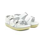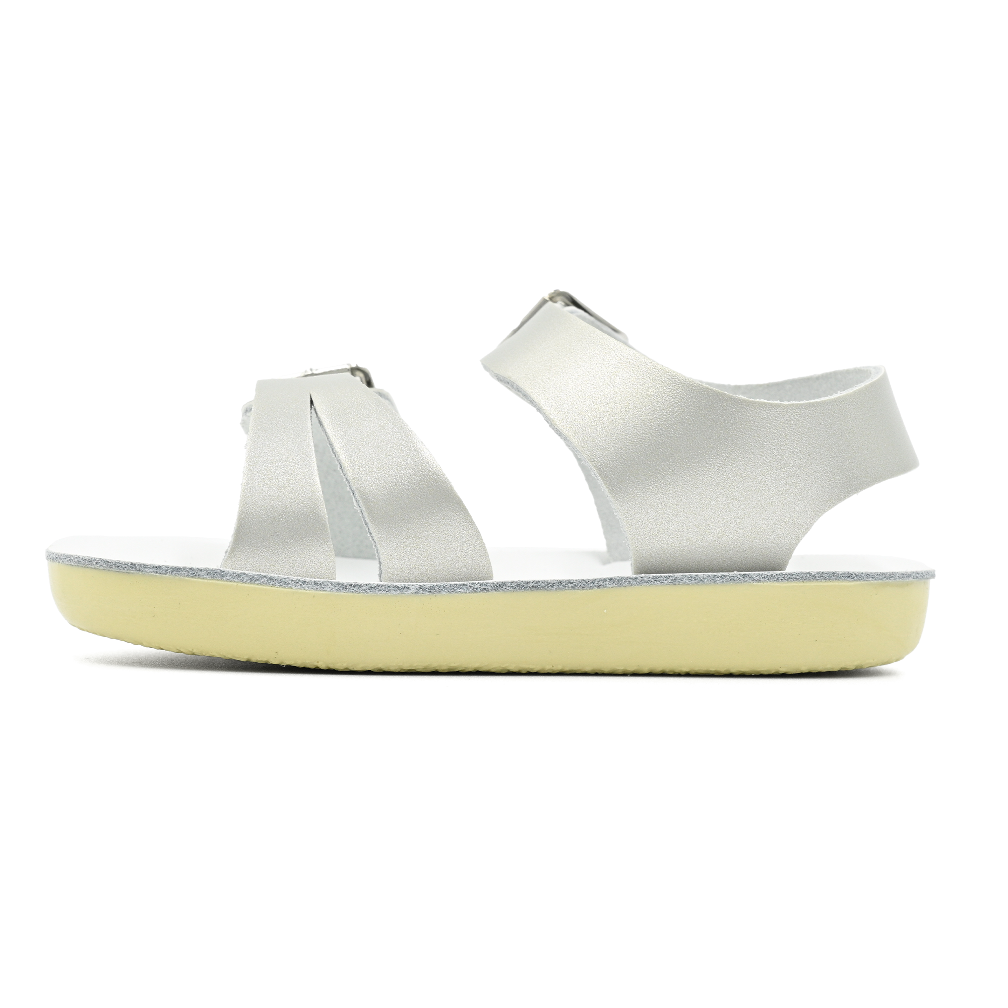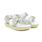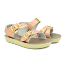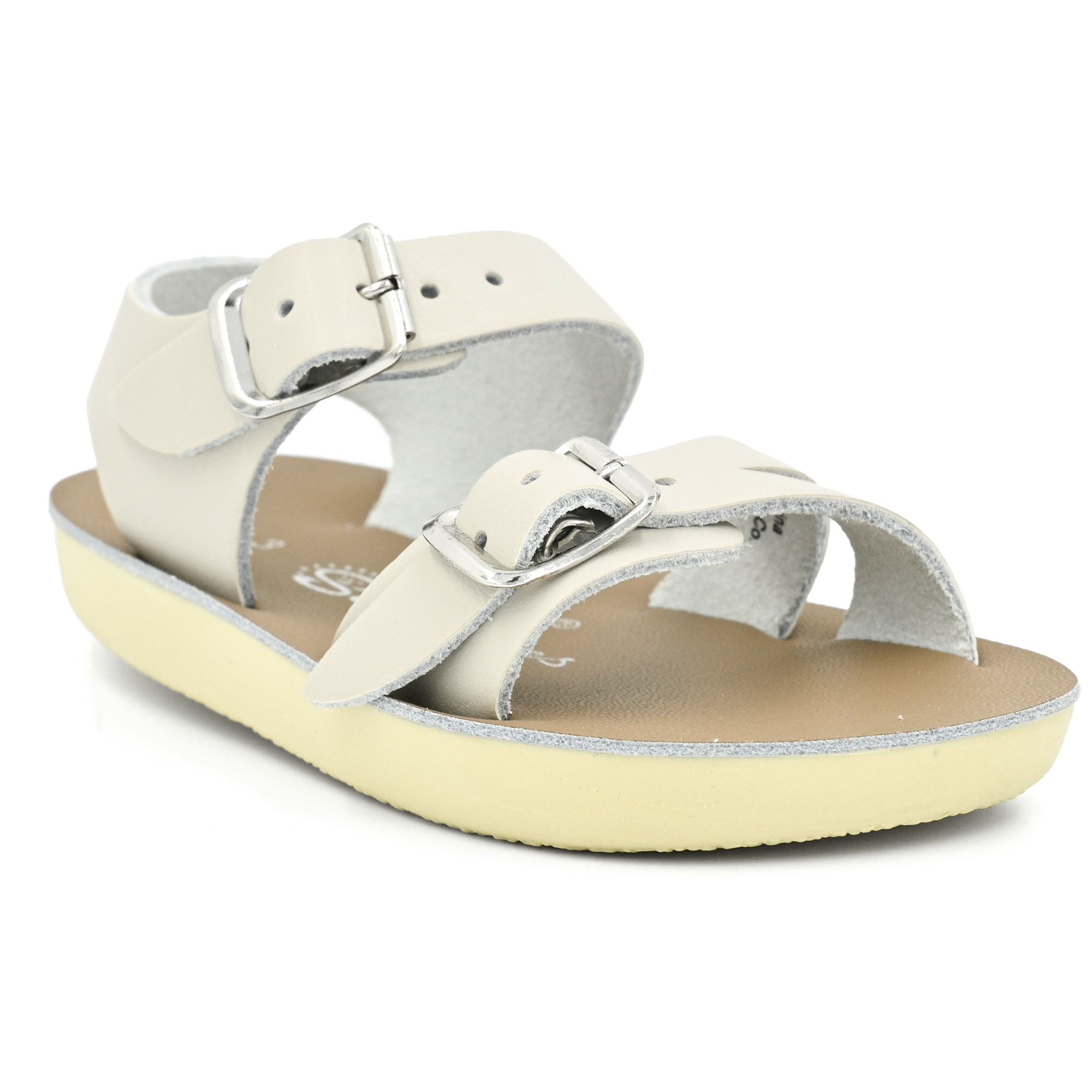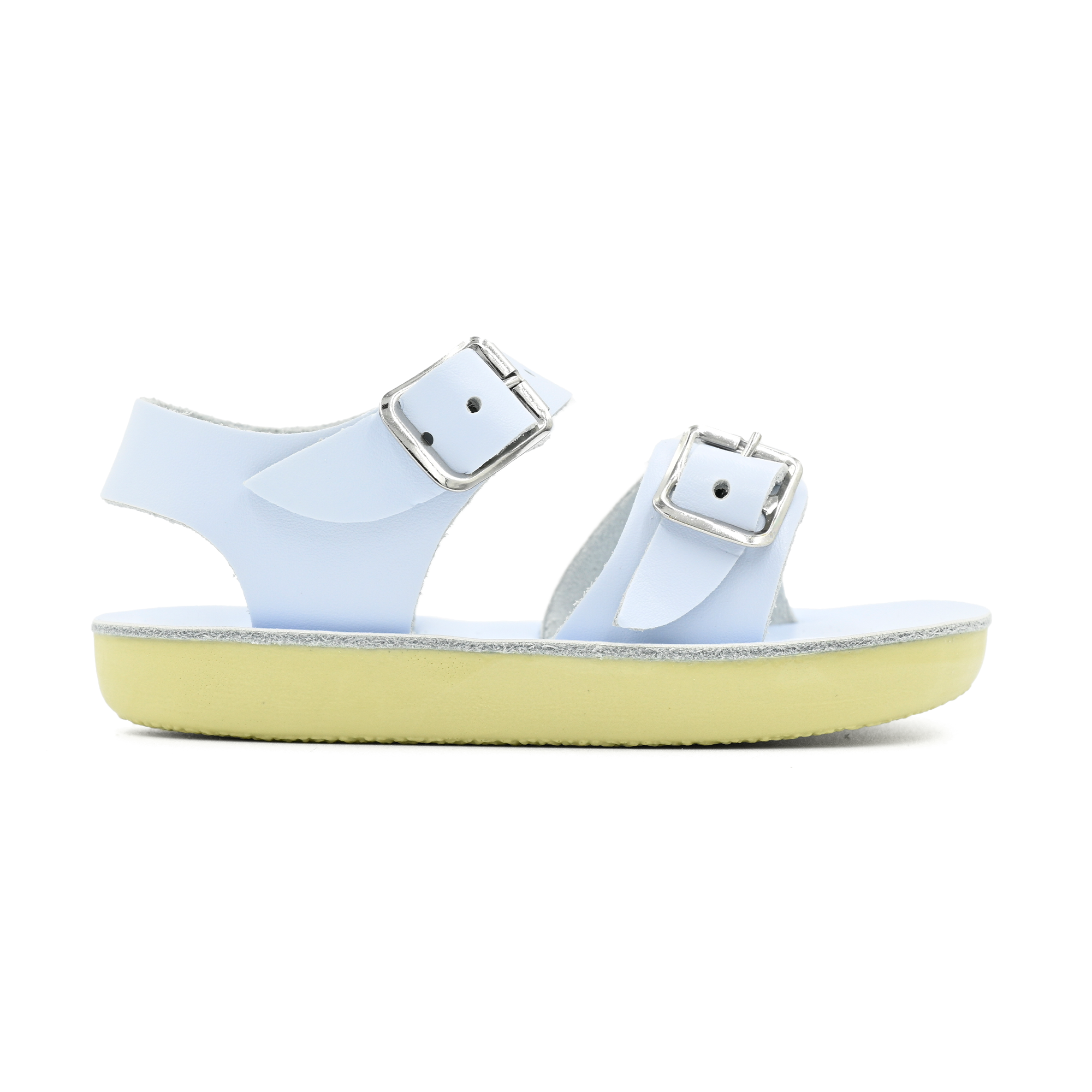 The Sun-San Sea Wee is made in the smallest baby sizes. We’ve added flex over the toe, making this little sandal a perfect starter pair for your tiny adventurer. A lightweight, cushioned urethane sole, rust-proof brass buckles and scuff-resistant, water-friendly genuine leather make these sandals ideal for in-and-out-of-water wear. Boys and girls can wear these with anything and look great.