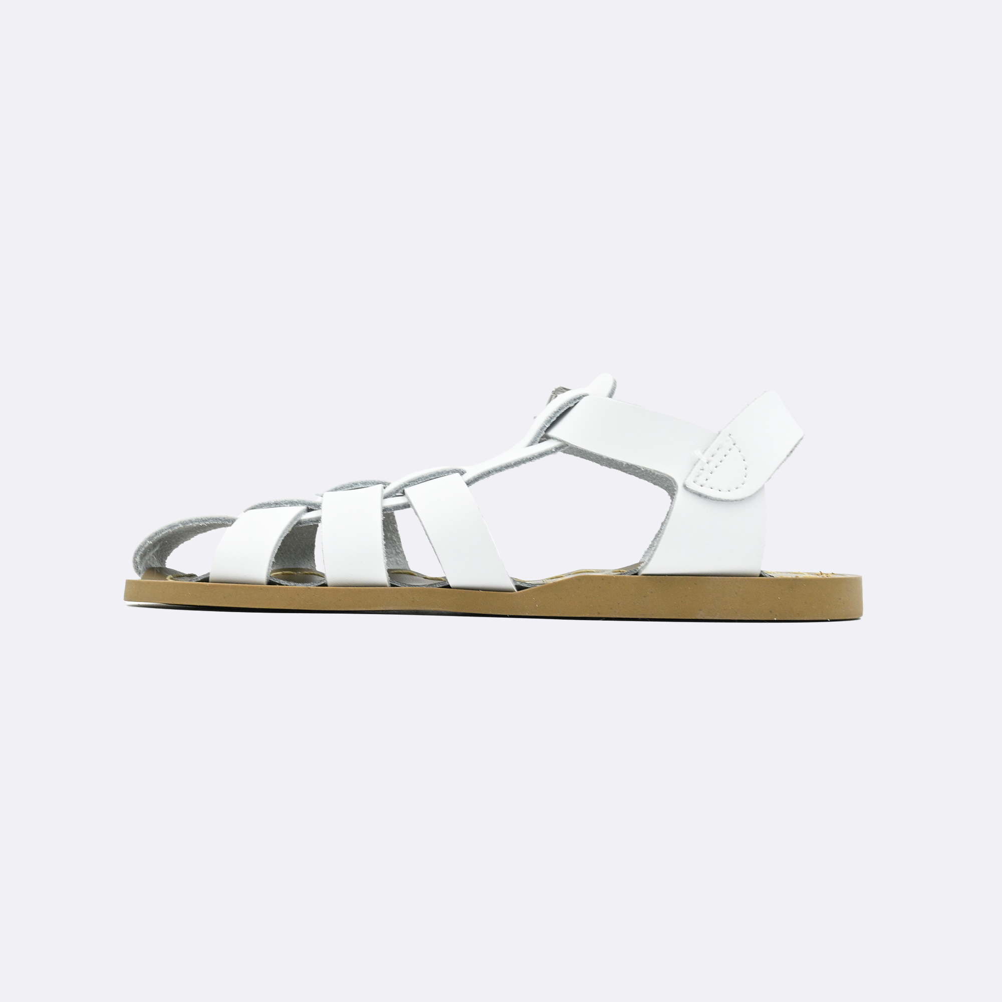 The Salt Water Shark is a classic fisherman sandal defined by its hand-crafted, non-slip, molded rubber sole and scuff-resistant, water-friendly genuine leather upper. They clean up easily, come with rust-proof brass buckles and are made for in-and-out-of-water wear.