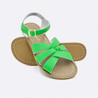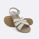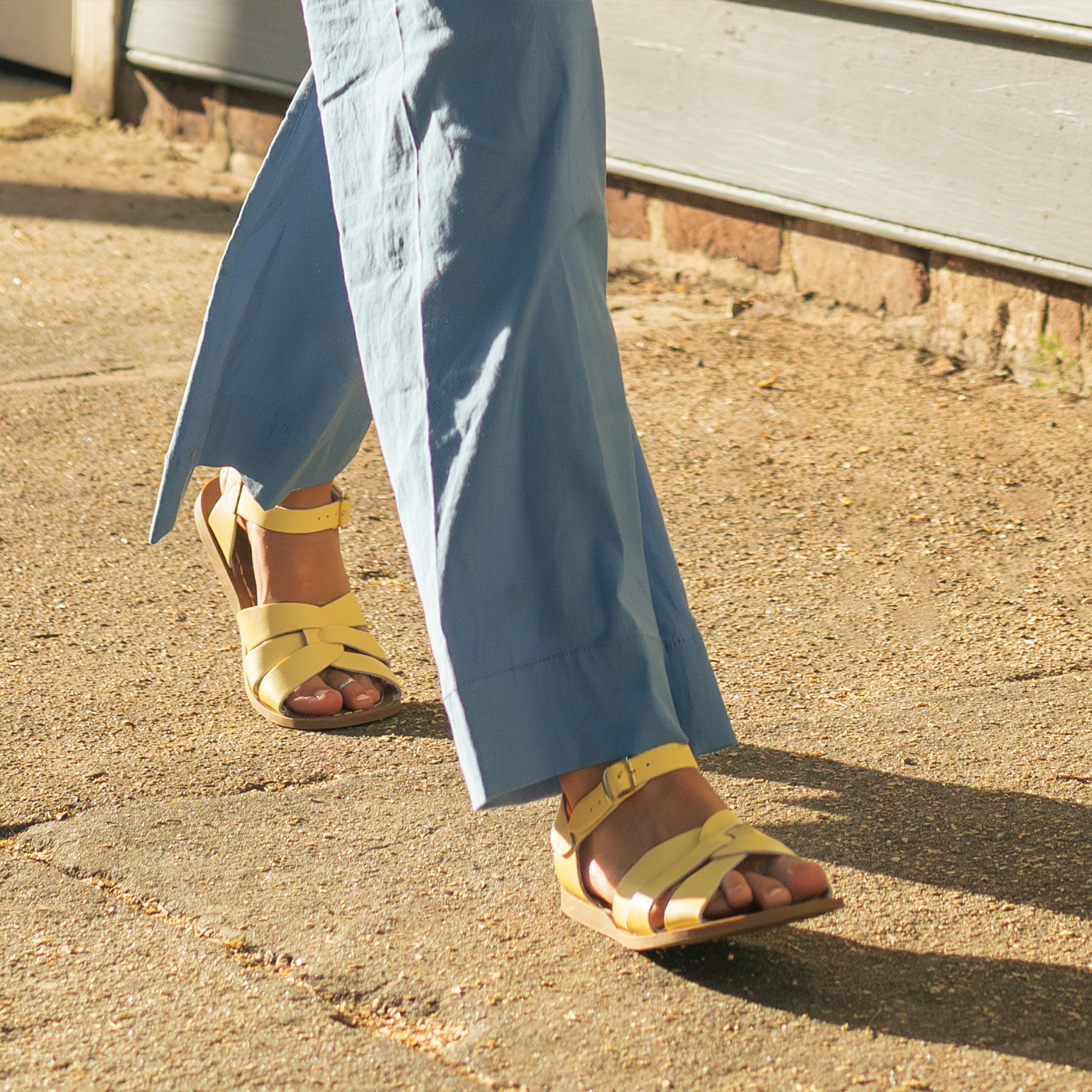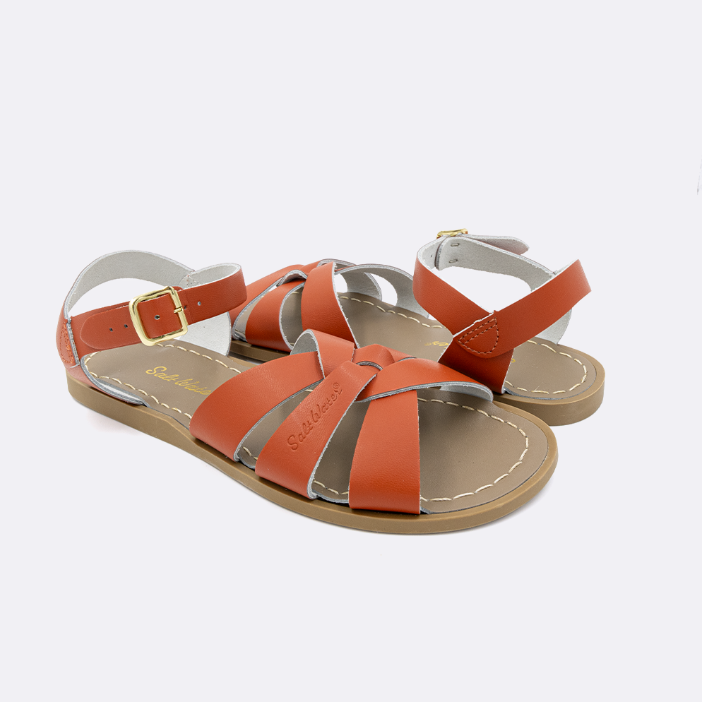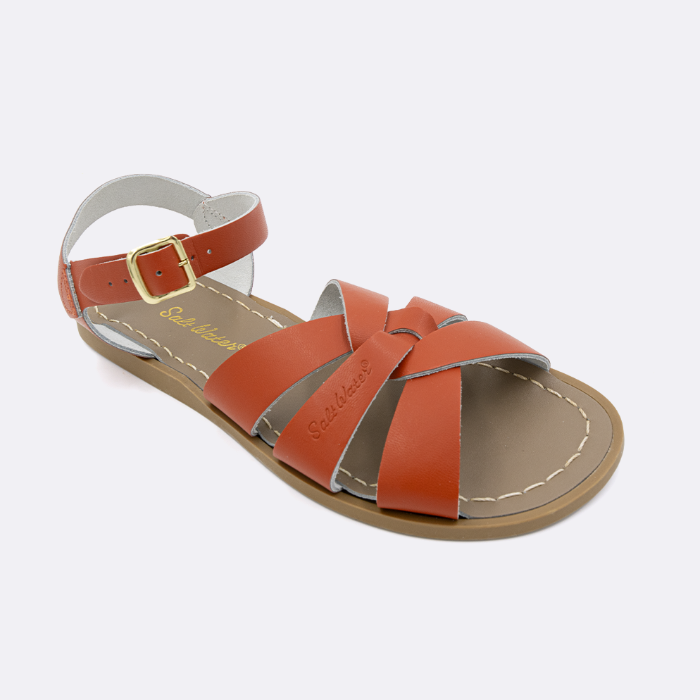 The Salt Water Original sandal, the first to debut from Walter Hoy’s workshop in 1944, is defined by its hand-crafted, non-slip, molded rubber sole and scuff-resistant, water-friendly genuine leather upper. They clean up easily, come with rust-proof brass buckles and are made for in-and-out-of-water wear. Available in adult and children’s sizes, this timeless style is popular among celebrities and fashionistas.