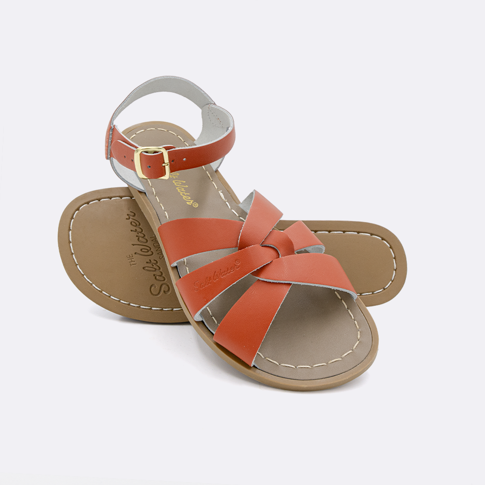 Adult Salt Water sandal sizes differ than traditional US Women's sizing. We have converted all our Salt Water sizing to US Women's sizing on the website. Salt Water sandals are manufactured in unisex sizing, and stamped on the sole as such. US Women's sizing is +2 from unisex sizing. So a Salt Water sandal stamped with a 6 is equivalent to a US Women's 8. The shoe box label will read 6/W8. Check the size chart per each product page for further measurements.