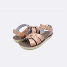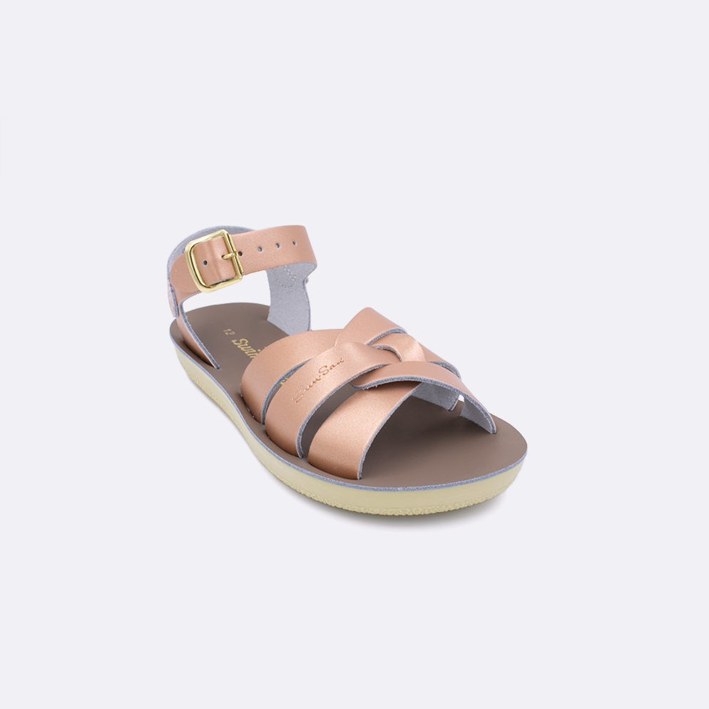 The Sun-San Swimmer has a slightly narrower fit and comes in a lightweight, cushioned urethane sole. Rust-proof brass buckles and scuff-resistant, water-friendly genuine leather make them ideal for in-and-out-of-water wear. They clean up so easily and, with proper care, will last for years.