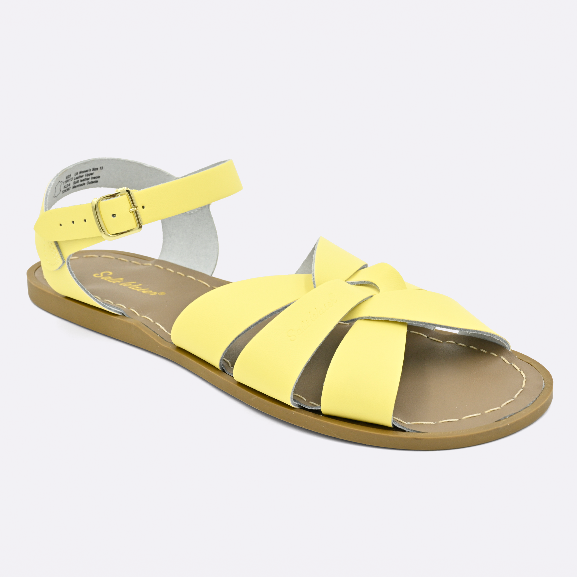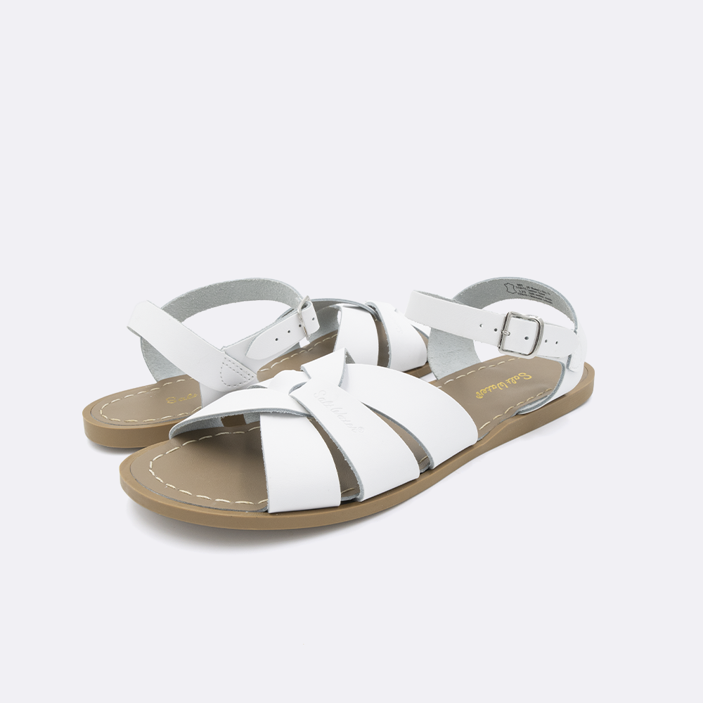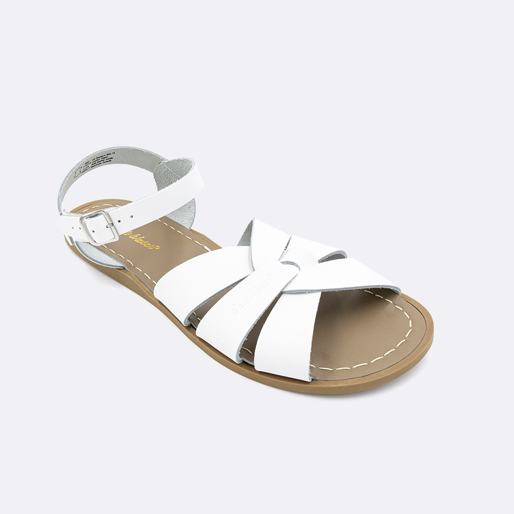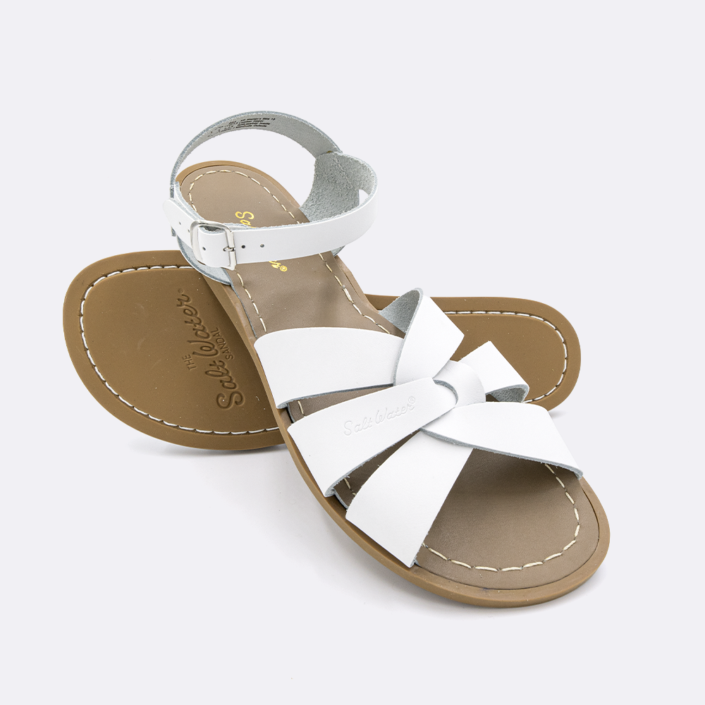 Adult Salt Water sandal sizes differ than traditional US Women's sizing. We have converted all our Salt Water sizing to US Women's sizing on the website. Salt Water sandals are manufactured in unisex sizing, and stamped on the sole as such. US Women's sizing is +2 from unisex sizing. So a Salt Water sandal stamped with a 6 is equivalent to a US Women's 8. The shoe box label will read 6/W8. Check the size chart per each product page for further measurements.