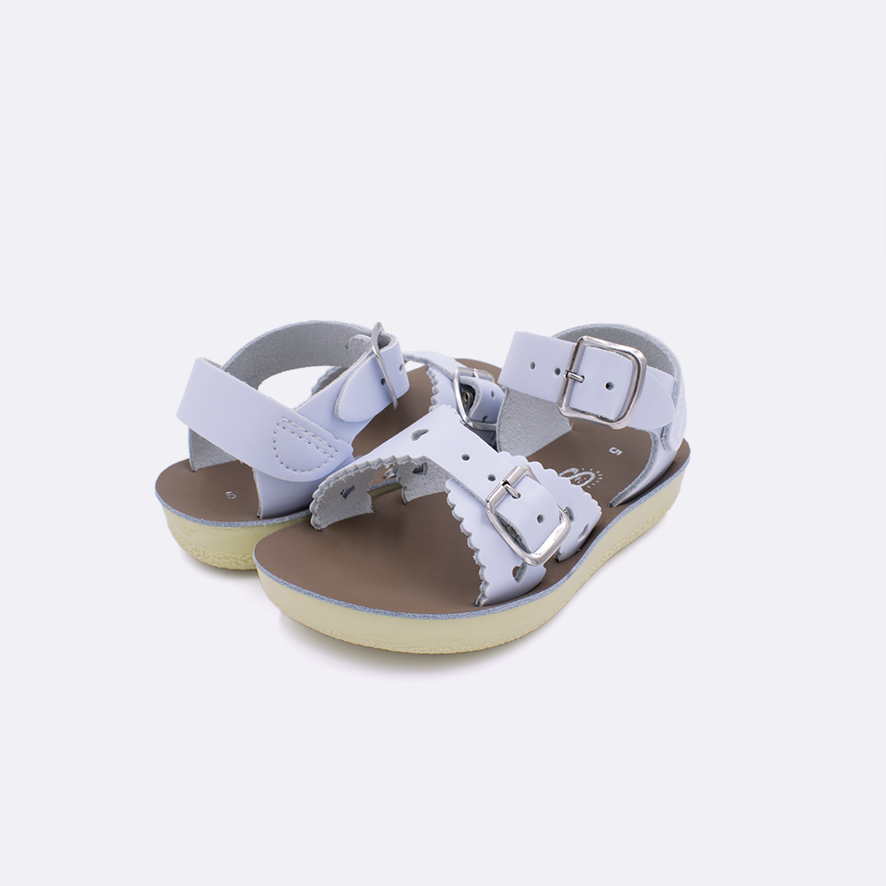 Crafted with water-friendly leather and a soft urethane-cushioned sole, the Sweetheart offers all-day comfort and flexibility for active toddlers. Two adjustable buckle straps at the toe and ankle ensure a snug, secure fit as your child grows and plays.